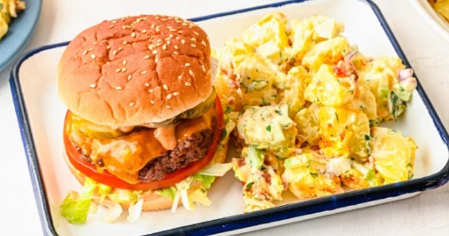Nothing says Summer like potato salad! Be the star of your next BBQ or gathering with Cheesy Bacon Potato Salad that combines everything you love about potato salad with tasty cheesy bacon.