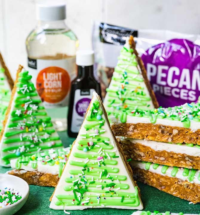 - Transfer the green icing to a piping bag and pipe zigzag lines across each triangle. Top with sprinkles and enjoy.